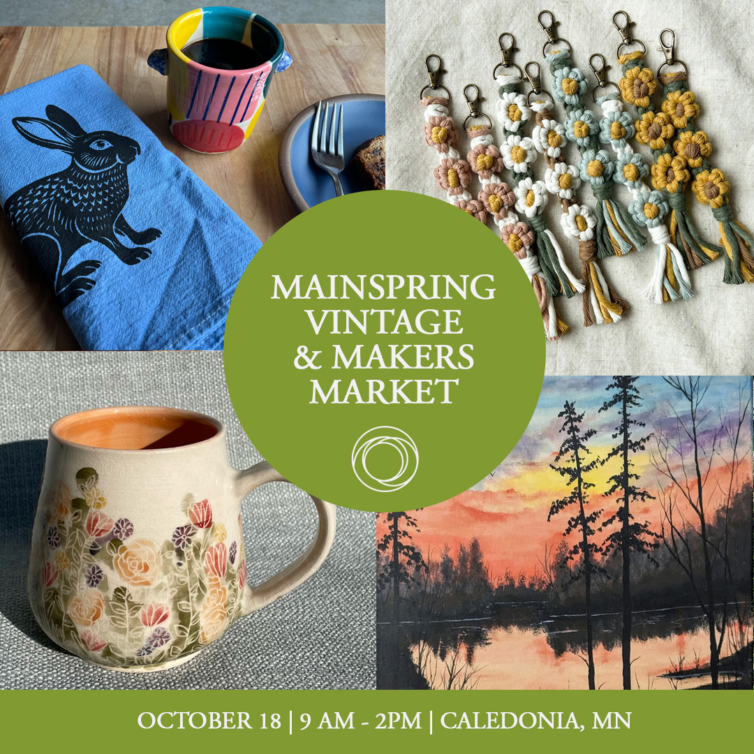 Mainspring is excited to announce the sixth annual Vintage & Makers Market of vintage and locally made goods on Saturday, October 18th from 9:00 a.m. to 2:00 p.m. at Mainspring in downtown Caledonia (404 E. Main St, Caledonia).